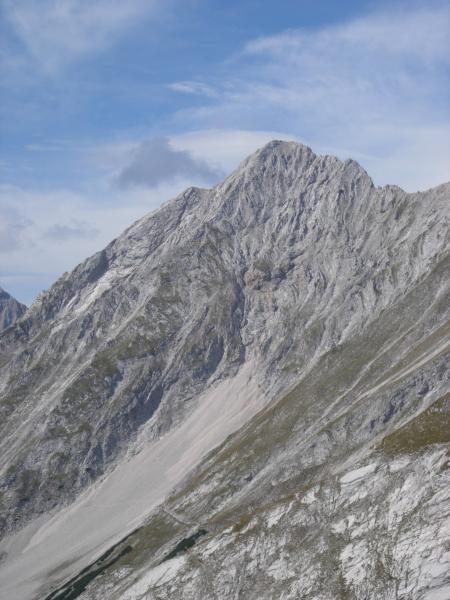 Informationen: | Steiler Felsgipfel über dem Lafatscher Joch. Gute Fernsicht. - Vom Lafatscher Joch über die Nordwestflanke, einfach - Vom Hallerangerhaus 2.5h - Von der Bettelwurfhütte 2.5h - Südwestgrat I, 1.5h - Südostflanke I, weglos, 2h von der Bettelwurfhütte An der Speckkarspitze existieren eine Unzahl von Kletterrouten. Zur besseren Übersicht werden diese hier nach bestimmten Gebieten gegliedert dargestellt: Nordwesteck (P2278): - Westwand, "Pechverschneidung", VII (Stelle), VI, 3-5h, teil brüchig - Westwand, südlicher Durchstieg V-, IV+, 3h, teil brüchig (Variante Spitzenstätter/Schoißwohl VI+) - Gerade Westwand, "Buhldurchschlag", VI/A0, 5h, ausgesetzt - Westwand, nördlicher Durchstieg V+ - Abstieg für diese Routen IV (Stelle), II, 3/4h zum Sattel Schnitlwände (auch Schnittlwände geschrieben): - Nordwestpfeiler, "Burattipfeiler", VI-/A0, V+, 3h - Nordwand, "Jungmannschaftsriß", VI-, V+, 4h - Nordwand "Tschechenplatte" VII+ (2 Stellen), VII, VI, 5h - Nordwand "Wunderland", VIII- (Stelle), VII, VI, 6h - Nordwand "Born to be Wild", VIII (2 Stellen), VII, VI - "Schlüssel zum Paradies" IX- - "Wunderland" VIII- - "Wunderland + Seniorenturm" VIII, VIII- - "Himmel und Hölle" IX - Abstieg vom Pfeilerkopf IV- oder abseilen Hallerangerwand (Westlicher Teil der Nordwand): - Über die große Rampe II, 3h - Gombocz/Vigl (Rechter Durchstieg, "Direkte") VI-, V+, 5-7h - Huen/Haim (Östlicher Durchstieg), VI-, V+, 5-7h Der Ausstieg der beiden letztgenannten Routen erfolgt meist durch Querung nach links oder rechts. Der direkte Ausstieg ist sehr brüchig und nicht empfehlenswert (VI, 2h) Überschallwand (Östlicher Teil der Nordwand): - Jöchler/Weidner V+ (Stelle), V, 4-5h - Alte Nordwand IV (Stelle), III, 3-4h (es existieren diverse Varianten, meist Stellen V, IV) - Kuen/Obermüller VI- (Stelle), V+, V, 9h - Tacitusführe V-, IV, 4-5h - Kuen-Haim-Dorbrovz-Führe VI- 8h - Karl-Binder-Gedächtnisführe IV+, 4-5h Durch die Überschallwand existiert ein Weg auf den Verbindungsgrat zwischen Speckkarspitze und Kleinem Bettelwurf, der als Abstiegsweg genutzt werden kann (II, 3h im Aufstieg). Flötenturm: - Ostkante V+, V, 1.5h - Westkante V+, V - Im Abstieg III, II, sehr brüchig, Abseilen. Als Skitour vom Südsporn ~43°, über die Platten. |