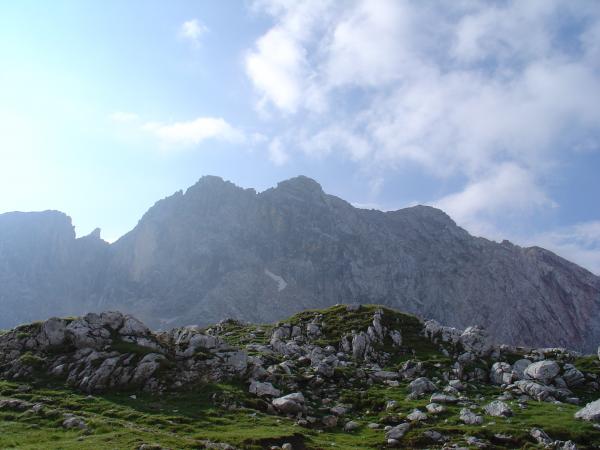 | Informationen: | Mittlerer Gipfel der Partenkirchner Dreitorspitze, eigentlich nur in der Überschreitung besucht. - Übergang vom Nordostgipfel II, 0.5h - Übergang vom Westgipfel II, 0,5h - Vom Frauenalpl III, 3h, sehr brüchig - Nordwand V+, 3h |
