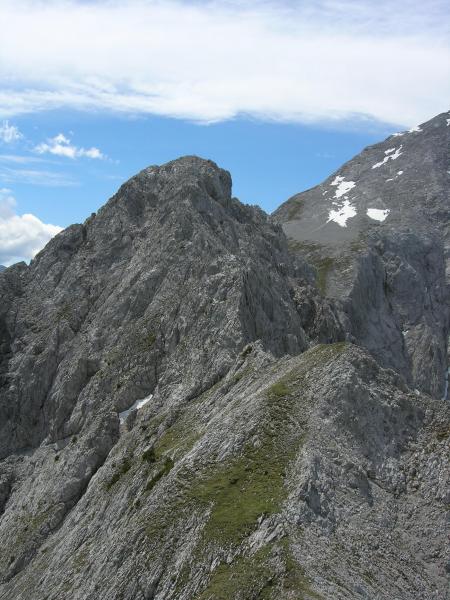 Der Verbindungsgrat vom Totenfalk zum Turmfalk. Laut AV-Führer III, auf jeden Fall aber höllisch ausgesetzt, auch wenn es auf dem Bild nicht so aussieht.