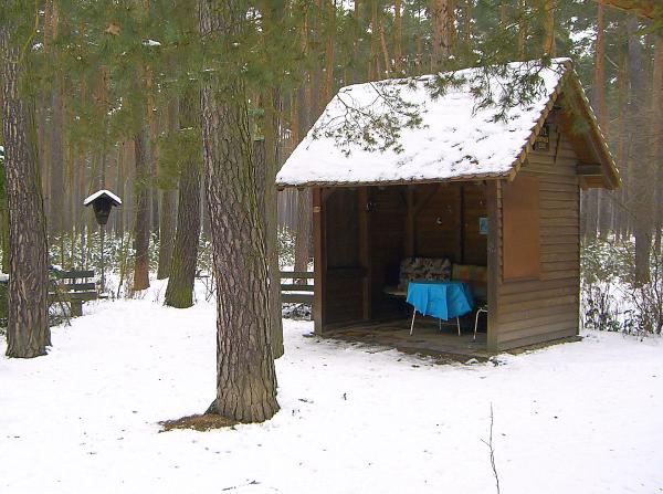 | Informationen: | Kleine offene Schutzhütte mit mehreren beistehenden Bänken. 1972 errichtet. |