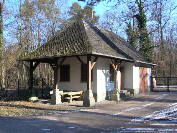 | Informationen: | Kleines, geschlossenes Waldhaus, das eine frei zugängliche, überdachte Rastmöglichkeit mit einem Tisch und zwei Bänken besitzt. 40m südlich fließt der Hardtbach vorbei. | |||