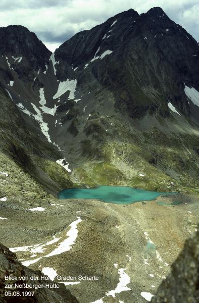 Blick von der Hohe Graden Scharte zur Noßberger-Hütte